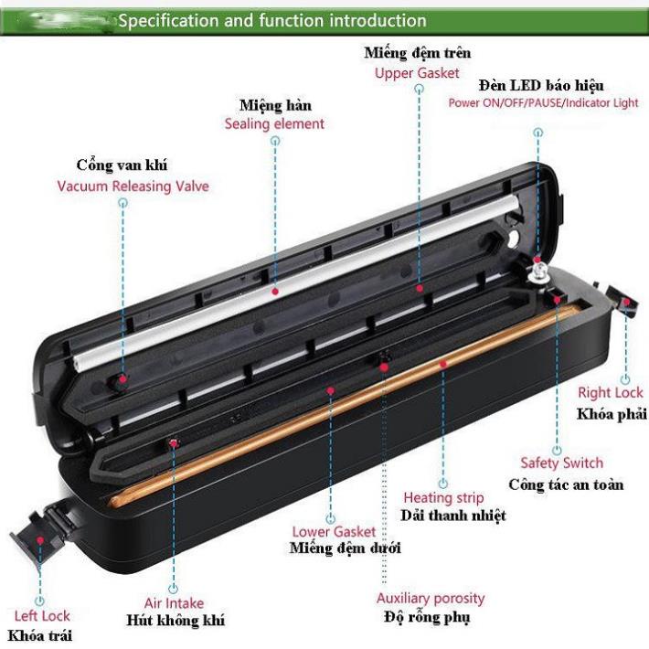 Giới thiệu máy ép chân không thực phẩm, Máy hút chân không thực phẩm kiêm hàn miệng túi Vacuum Sealer thế hệ mới 2021 - TẶNG TÚI