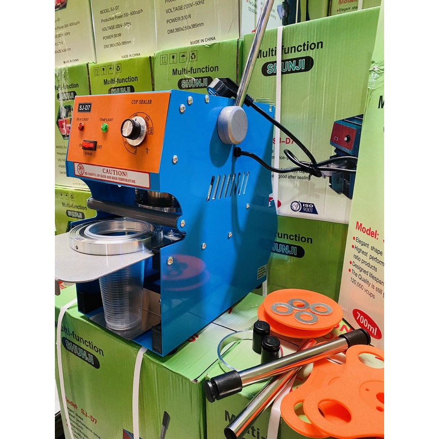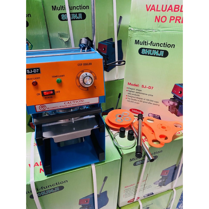 Máy ép Ly Shunji 700 có thể dán được hầu hết các loại cốc nhựa dùng một lần hiện có trên thị trường. Với mỗi vật liệu củathì máy có nhiệt độ khác nhau, thông thường là ở mức 170C.
