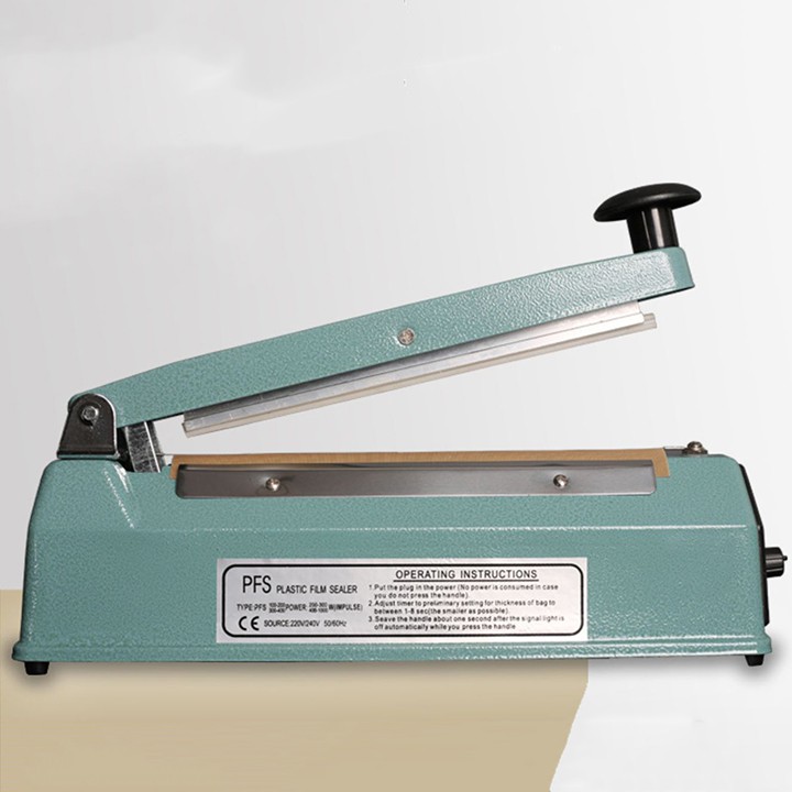 + Máy hàn miệng túi FPS200 vỏ thép 20CM (xanh) có lớp ngoài được làm bằng nhựa,đường hàn tối đa 20cm ( dành cho túi có chiều rộng tối đa 20cm) sử dụng an toàn, không bị rò điện, đóng gói tiện lợi cho nhiều loại bao bì nilon khác nhau, giá cả cạnh tranh nhất trên thị trường hiện nay