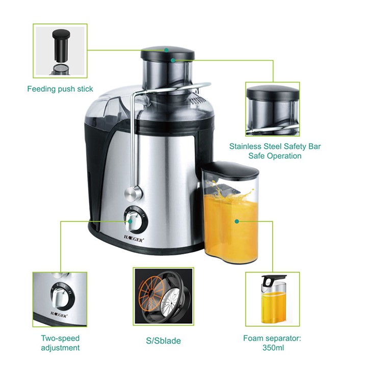 Máy ép trái cây HAEGER HG – 2805 ép nhanh, bảo vệ quá tải - an toàn cho máy và người sử dụng