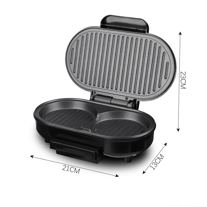 - Hai bề mặt nướng có kích thước xấp xỉ nhau, có đường kính 10,5 cm và phủ lớp chống dính giúp vệ sinh nhanh chóng và dễ dàng. Với các rãnh sâu hơn, bạn sẽ có được một kiểu nướng đặc biệt ngon miệng và đẹp mắt.