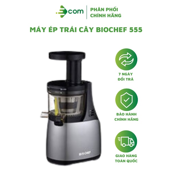 - Biochef 555 công nghệ ép tốc độ thấp cho nước ép thơm ngon, nhiều dưỡng chất hơn Máy ép trái cây Biochef 555 sử dụng công nghệ ép tốc độ thấp với khả năng ép kiệt nước, tốc độ vòng quay cực thấp chỉ 43 vòng/ 1 phút (thấp hơn các máy ép tốc độ thấp Kuvings và 1 số thương hiệu khác thường từ 60-80 vòng/phút) giúp giữ nguyên những dưỡng chất, vitamin, enzim trong hoa quả. Vì vậy nước ép hoa quả của máy Biochef 555 có màu sắc nguyên vẹn và mùi vị ngon đặc trưng. Đây là ưu điểm vượt trội ở máy ép trái cây Biochef 555 mà các dòng máy ép ly tâm không thể làm được. Máy ép Biochef 555 được với trục vít cải tiến giúp nâng cao năng suất, tiết kiệm nguyên liệu