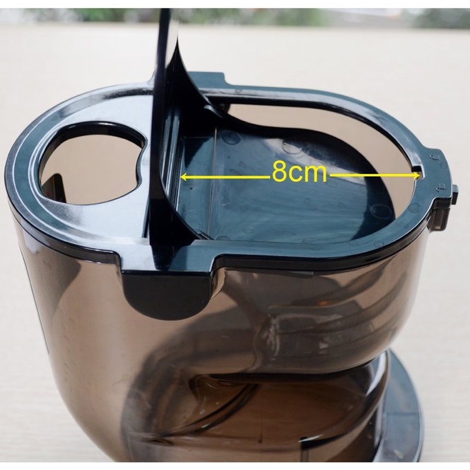 - Ống tiếp nguyên liệu lớn Họng thả trái cây rất lớn, lên tới 8x8 cm, nên việc ép trái cây, hay rau củ quả nguyên trái trờ nên dễ dàng hơn, giúp bạn tiết kiệm thời gian hơn, không phải cắt nhỏ nguyên liệu như trái táo, ổi,... Mà có thể thả trực tiếp vào họng và chờ khoảng 10s là xong 1 ly nước ép.