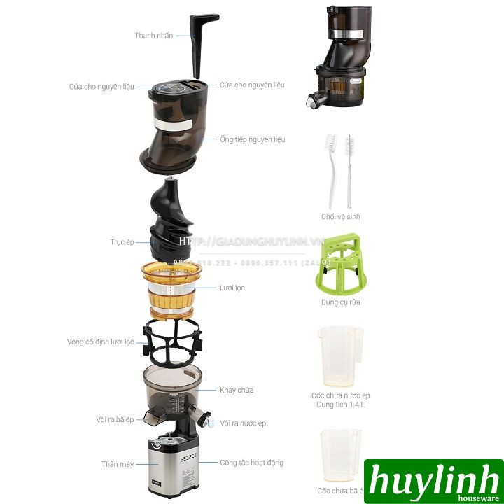 - Công nghệ ép trái cây tốc độ chậm hàng đầu thế giới.