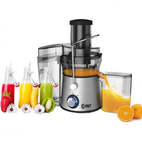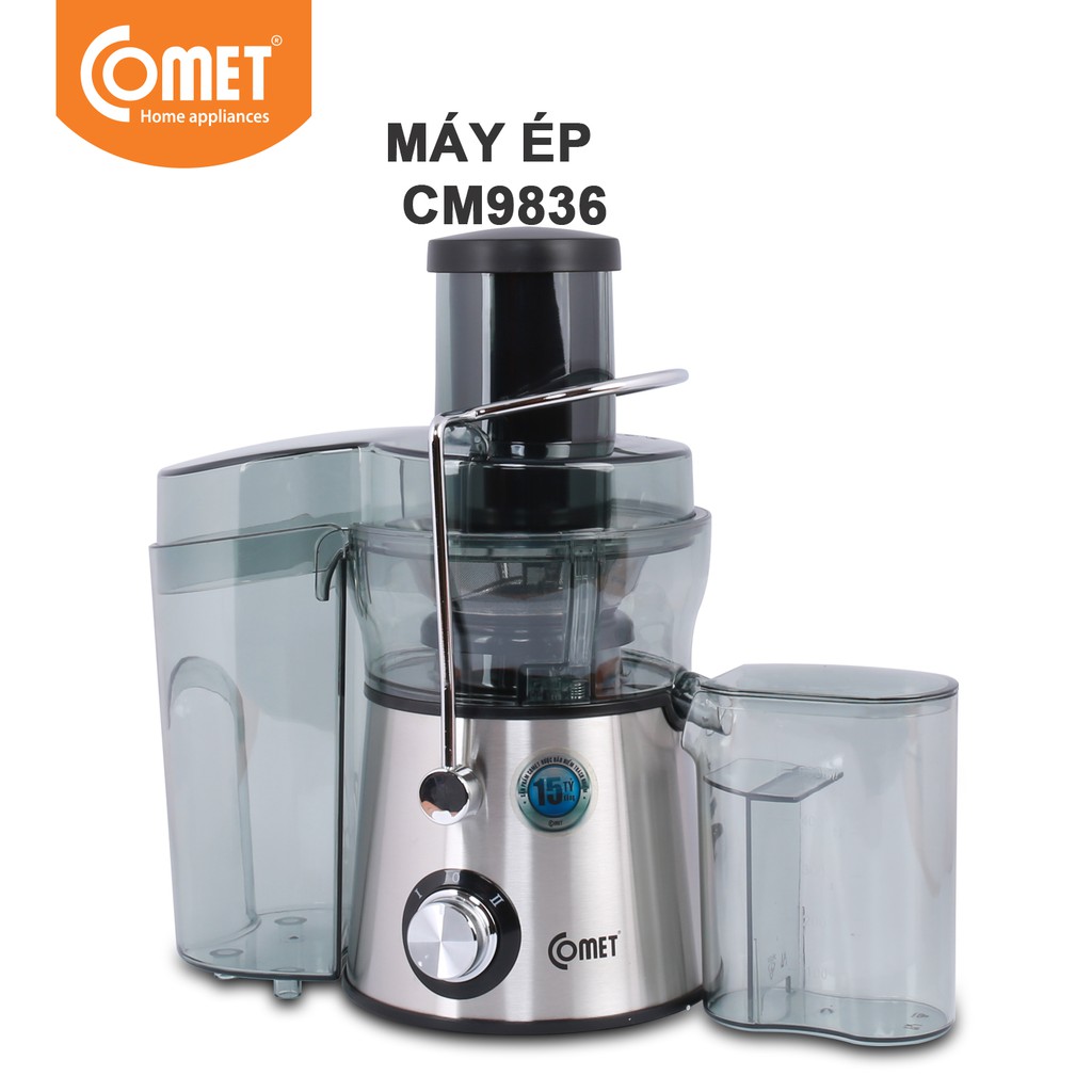 - Máy ép trái cây Comet CM9836 với lưỡi dao không gỉ, giúp bạn xay nhuyễn các loại trái cây nhanh hơn các loại máy xay ép thông thường khác. Ngoài ra, bạn có thể yên tâm khi sử dụng vì sản phẩm còn hỗ trợ khóa an toàn, rất thích hợp với gia đình có trẻ nhỏ..