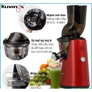 Máy ép trái cây Kuvings E7000 là model được ra mắt năm 2019 với nhiều cải tiến hơn sử dụng công nghệ ép chậm giúp giữ nguyên vitamin, mùi vị của từng loại trái cây. Miệng ống rộng hơn đường kính 8.2 với cổng lật chữ O dễ dàng cho cả quả mà không cần phải cắt nhỏ, có thể hoạt động liên tục 30 phút.Mạnh mẽ hơn: Nắp tô được nâng cấp được cải thiện bằng cách thêm điểm lắp ráp từ '3' đến '4', để cho thiết bị lắp ráp mạnh hơn và ổn định hơn