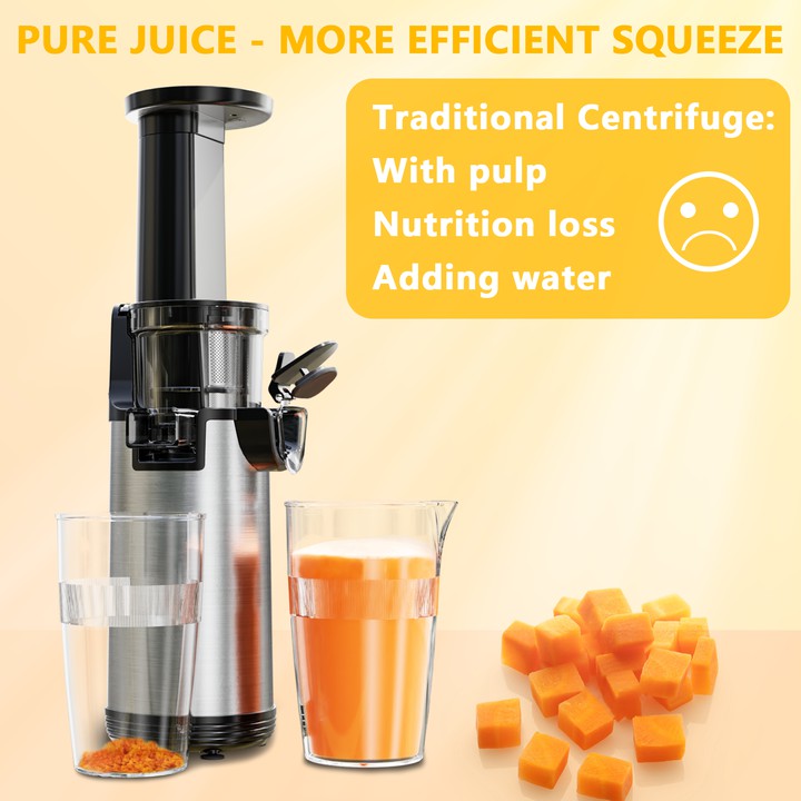 - Tỷ lệ nước ép nguyên chất 97% Không còn cặn bã khó chịu, tỷ lệ nước ép nguyên chất càng cao, hàm lượng cạn bã càng thấp. Việc thưởng thức nước ép trái cây trở nên tinh tế và hấp dẫn hơn