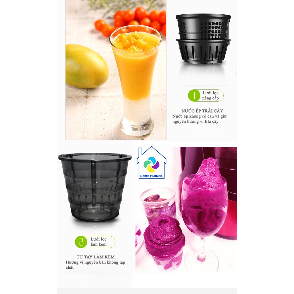 Máy ép trái cây tốc độ chậm, Lưới lọc được nâng cấp Ép kiệt 95% nước, Máy ép hoa quả nội địa Trung Quốc MIUI, BH 12th