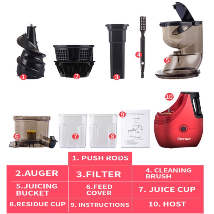 Máy ép trái cây tốc độ chậm Merkur JE-B02B 150W - Chất liệu: Tritan, ABS, PC, PEI, BPA🍓Nước ép mang hương vị tự nhiên