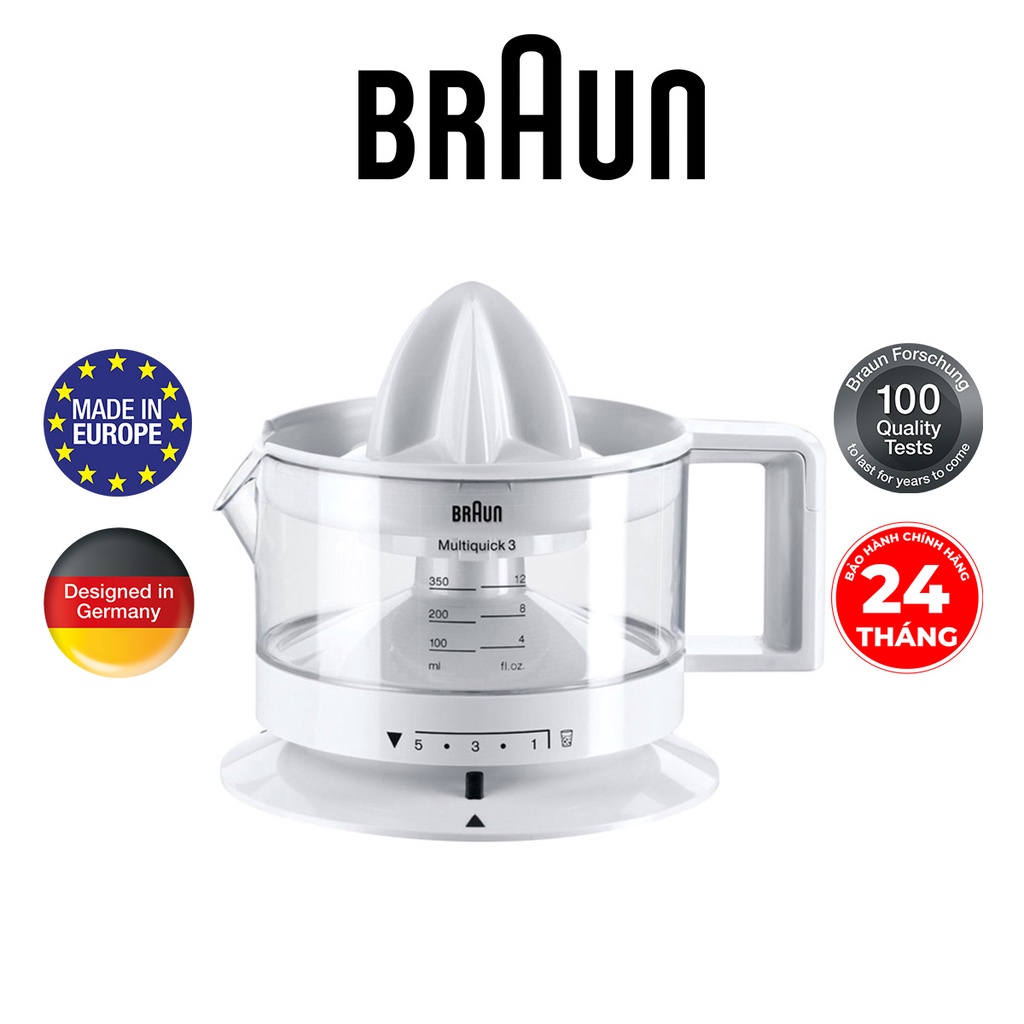 Braun là thương hiệu Đức hàng đầu thế giới với lịch sử hơn 90 năm phát triển. Máy vắt cam Braun được sản xuất dựa trên những tiêu chuẩn chất lượng cao cấp nhất của Đức và châu Âu. Với phương châm “Thiết kế tạo nên sự khác biệt”, Braun đã cho ra đời những dòng sản phẩm cao cấp với thiết kế đơn giản, hài hòa, sang trọng nhưng vẫn đảm bảo tính năng ưu việt. Các thiết kế của Braun được khẳng định với hơn 100 giải thưởng quốc tế danh giá.
