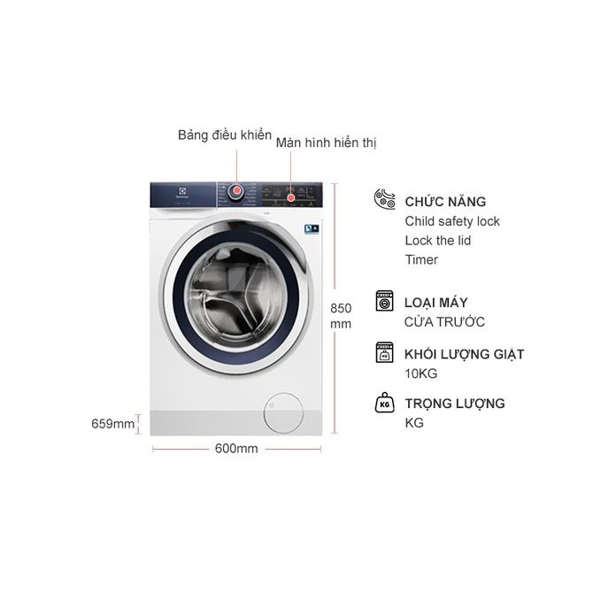 Khối lượng giặt 10.0 Kg