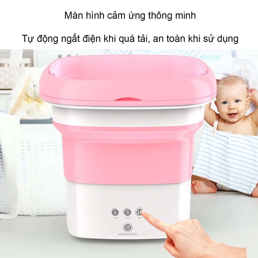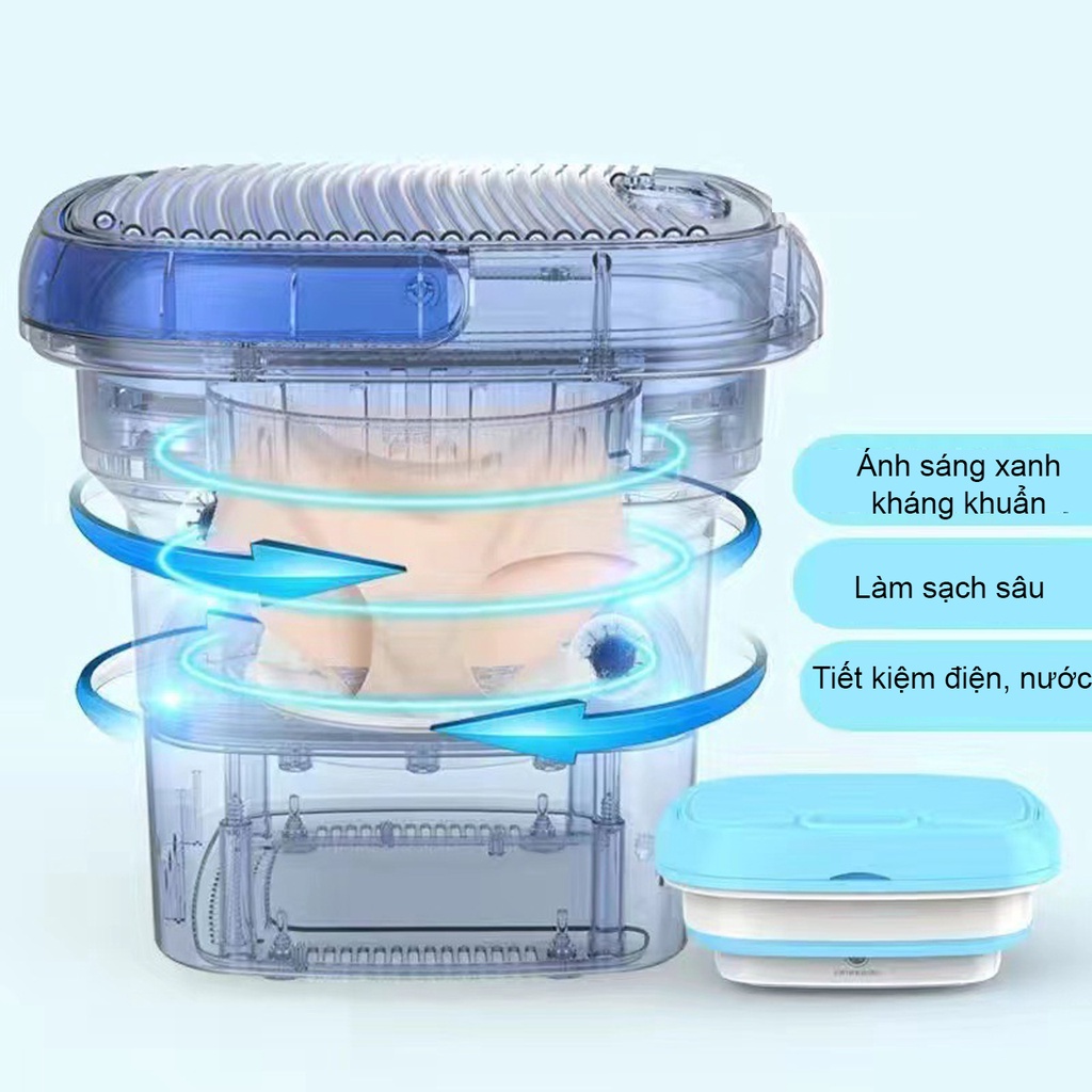 Máy giặt Mini gấp gọn di động, Máy giặt 3kg giặt sạch bụi bẩn đồ cá nhân, vắt khô, khử khuẩn bằng UV công nghệ Blue Ag