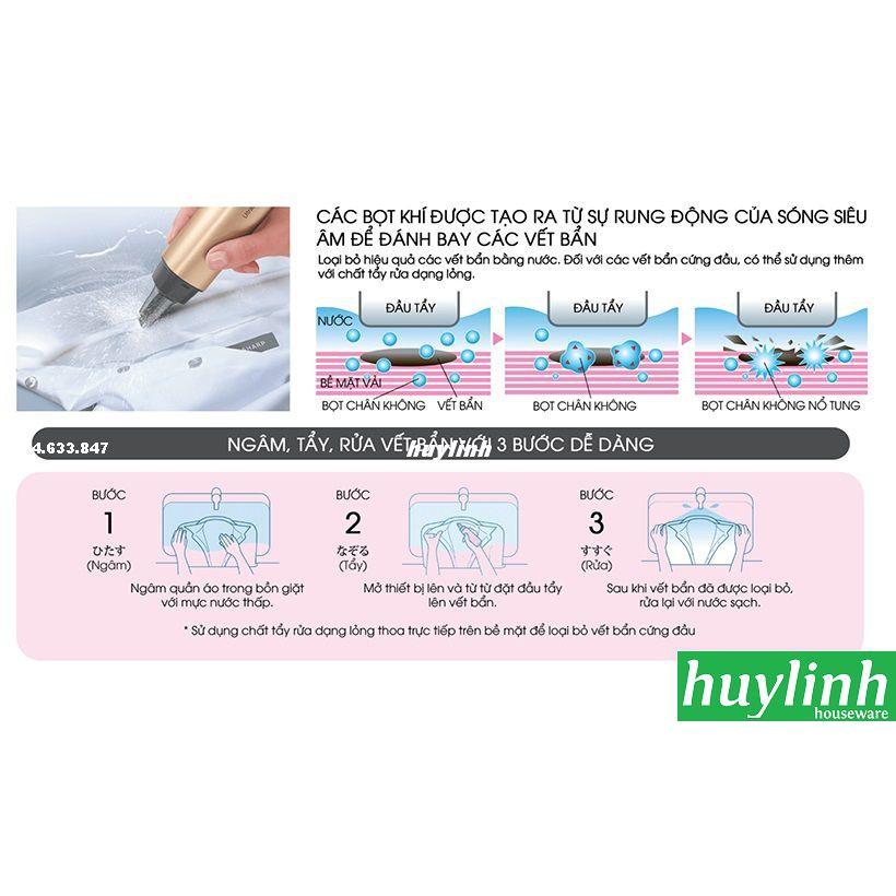 - Khi cần thiết có thể sử dụng thêm chất tẩy rửa (dạng lỏng) như nước giặt, nước rửa tay... để xử lý vết bẩn trong thời gian ngắn mà không làm hư hại đến sợi vải. Đối với những chất liệu vải cao cấp hoặc những chất liệu vải dễ bị hư hại khi làm sạch theo cách thông thường thì thiết bị tẩy rửa này là giải pháp hiệu quả.