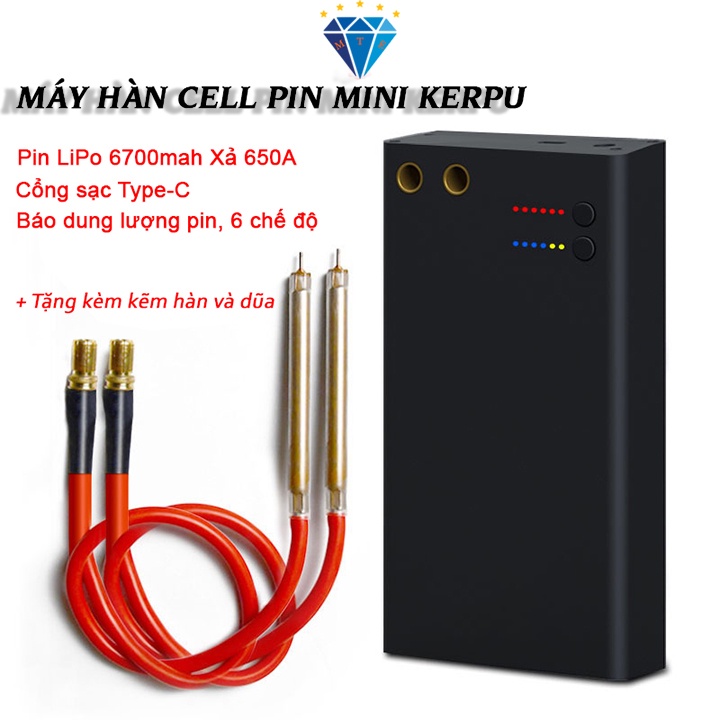 Nhà cửa & Đời sống > Dụng cụ & Thiết bị tiện ích > Dụng cụ > Dụng cụ hàn điện || Máy Hàn Cell Pin Mini Kerpu 6700mAh Xả 650A Vỏ Nhôm (tặng kèm cáp sạc Type-C, kẽm hàn, dũa)Còn hàng