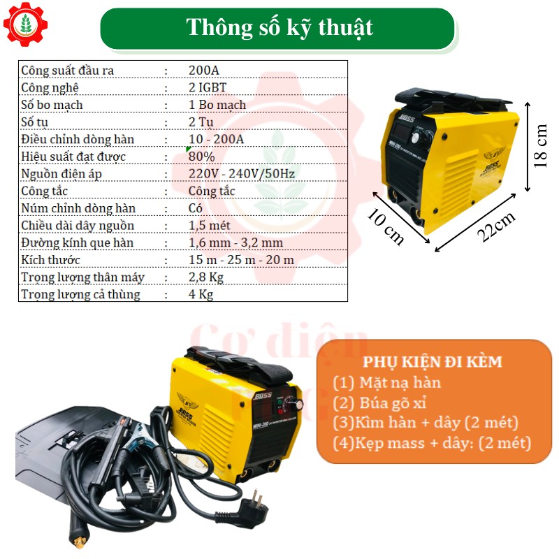 Tên sản phẩm : MÁY HÀN ĐIỆN TỬ BOSS MINI ARC 200A