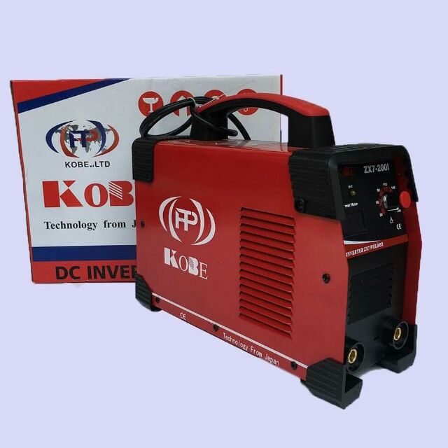 MÁY HÀN ĐIỆN TỬ KOBE 200I có thể hàn que từ 2.5-3.2ly thiết kế đep, gọn nhẹ, bền, dễ sử dụng, giá cả hợp lý.Bảo hành 12 tháng kèm bộ dây hàn.