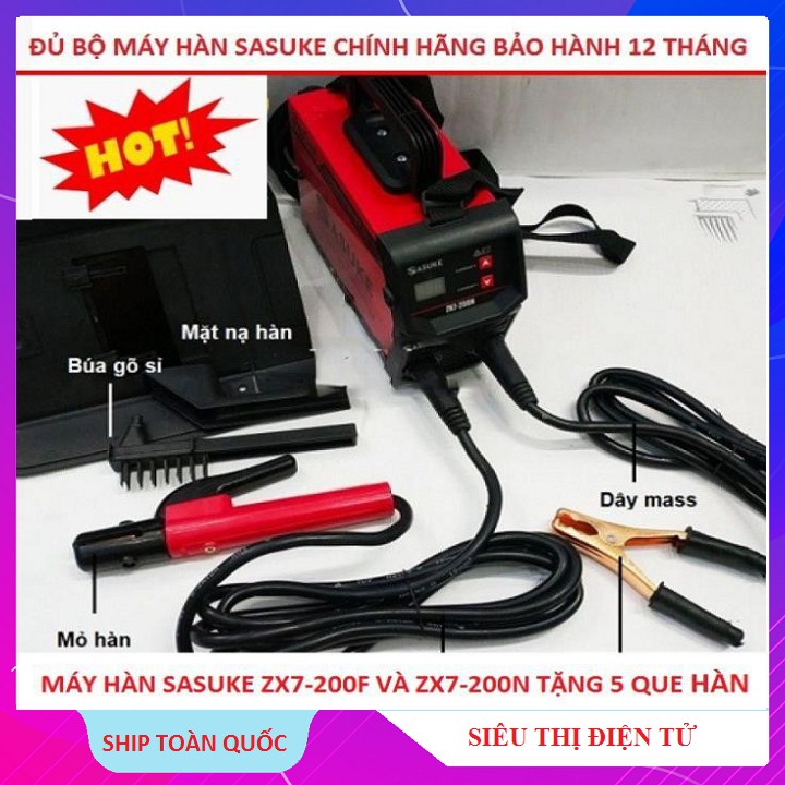 Quý khách lưu ý : shop có bán 2 model SASUKE ZX7 - 200F Và model SASUKE ZX7 - 200N quý khách chọn mua đúng sản phẩm mình cần nhé, shop có tặng thêm 5 que hàn 2.5ly kèm theo máy hàn và được bảo hành 12 tháng chính hãng