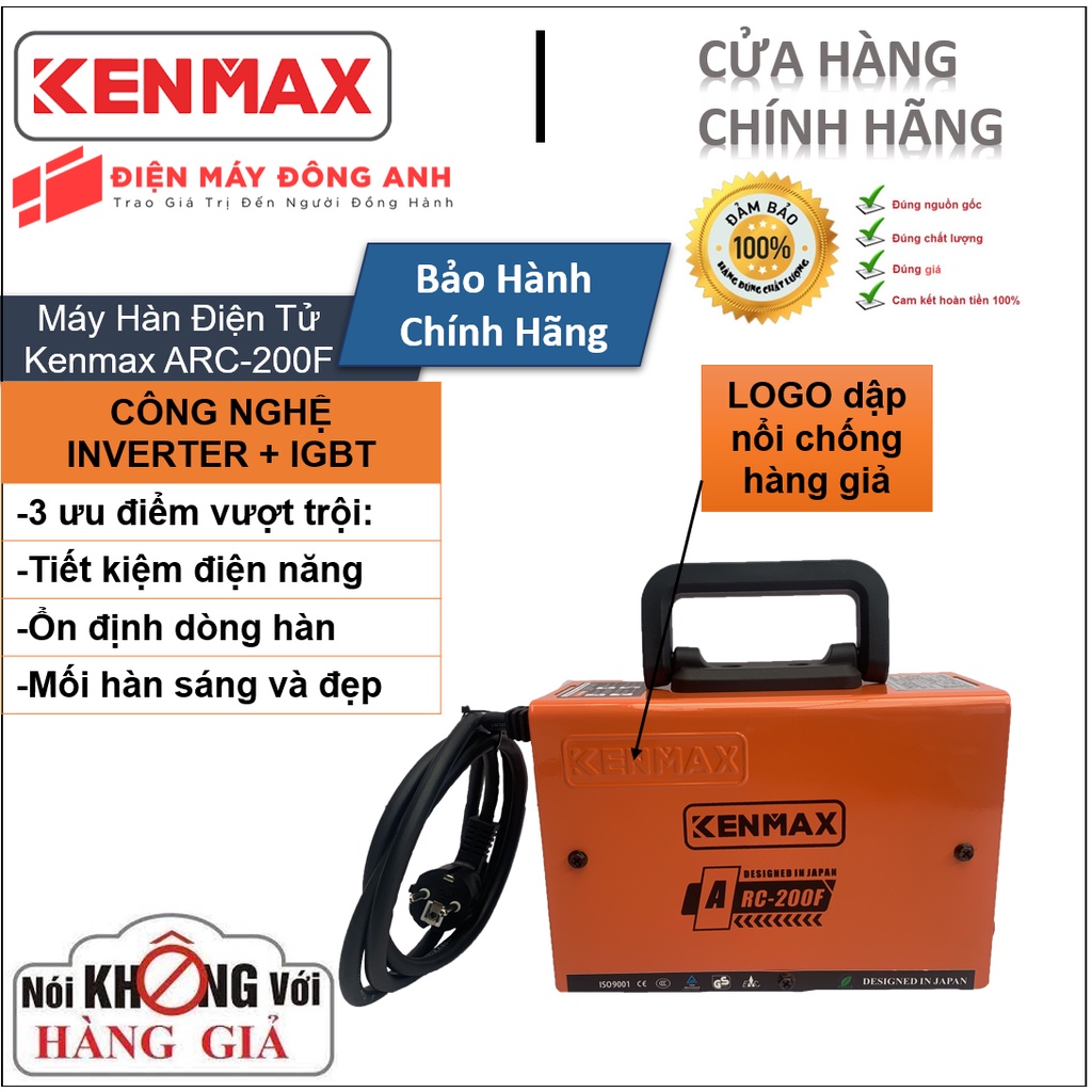 - Máy hàn que Kenmax ARC-200F có khả năng điều chỉnh dòng hàn lên tới 200A sẽ giúp công việc của bạn trở lên nhanh chóng. Máy hàn que có cấu trúc chắc chắn với lớp vỏ ngoài bằng kim loại sơn tĩnh điện chống han rỉ, bên trong gồm 1 bo mạch, 2 tụ.