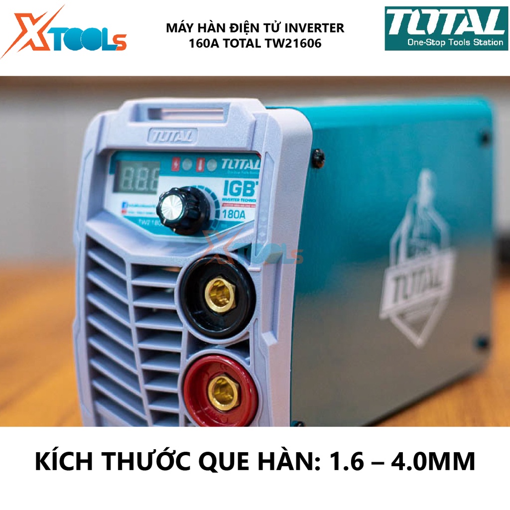 Giới thiệu Máy hàn điện tử TOTAL TW21606 Thiết bị hàn điện tử Inverter MMA 85V Điện áp ra tối đa 160A Kích thước que hàn 1.6 - 4.0