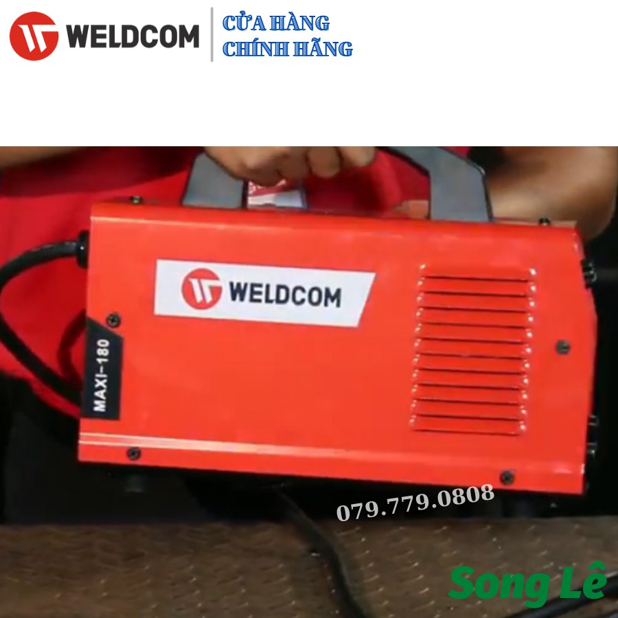 SẢN PHẨM MÁY HÀN QUE WELDCOM MAXI 180 (DÒNG HÀN THỰC CHUẨN CHÂU ÂU)Máy hàn que Weldcom Maxi 180 được ứng dụng công nghệ biến tần Inverter IGBT nên giúp tiết kiệm tới 60% điện năng so với máy hàn cơ truyền thống, cho khả năng dẫn dòng cao và ổn định. Ngoài ra, nhờ ứng dụng công nghệ hiện đại này mà khi vận hành, chiếc máy hàn que Maxi 180 – Weldcom gần như khắc phục được vấn đề thường gặp ở nhiều dòng máy hàn thông thường, đó là việc tiếng ồn lớn gây ảnh hưởng đến môi trường xung quanh.