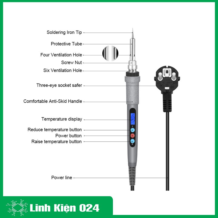 Máy Hàn Điều Chỉnh Nhiệt Độ Hiển Thị LCD Handskit 936 60W 220VAC 100-480*CThông số kỹ thuật của máy hàn điện điều chỉnh nhiệt độ: