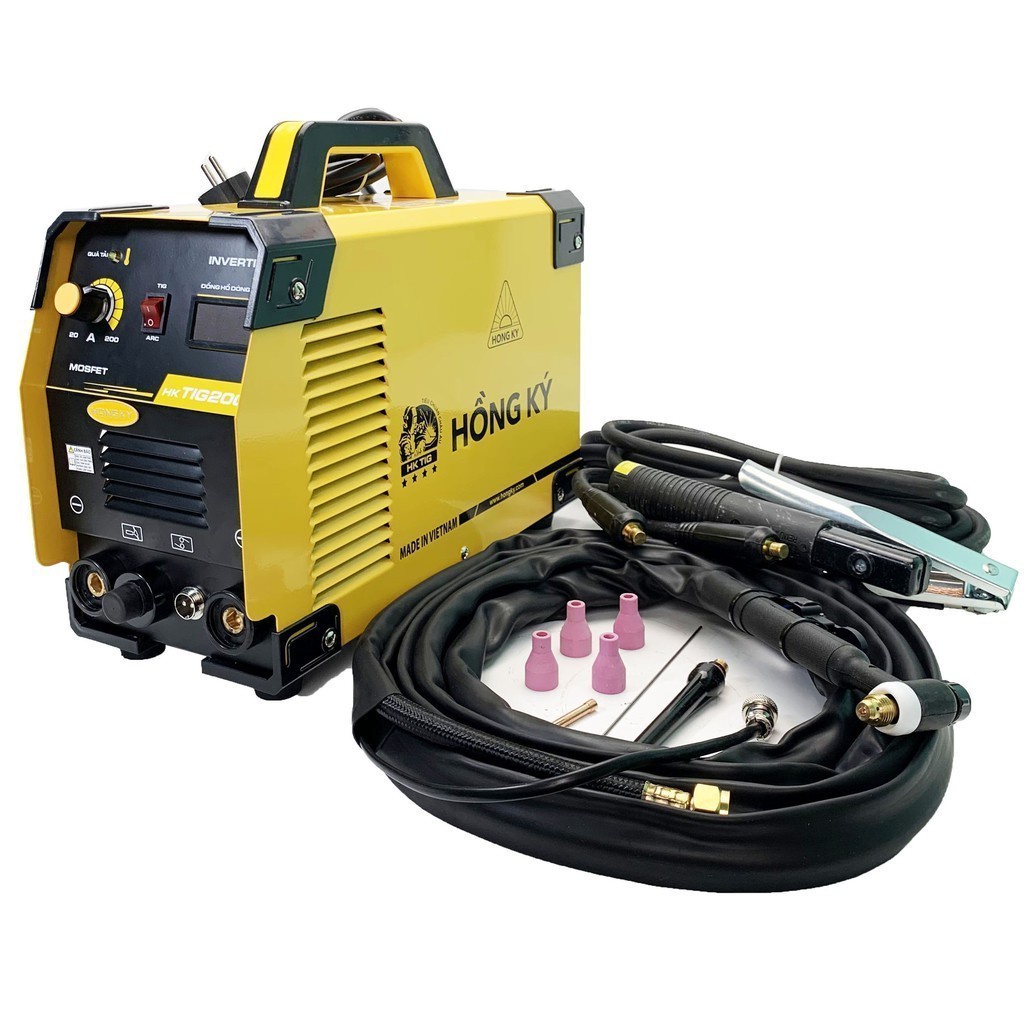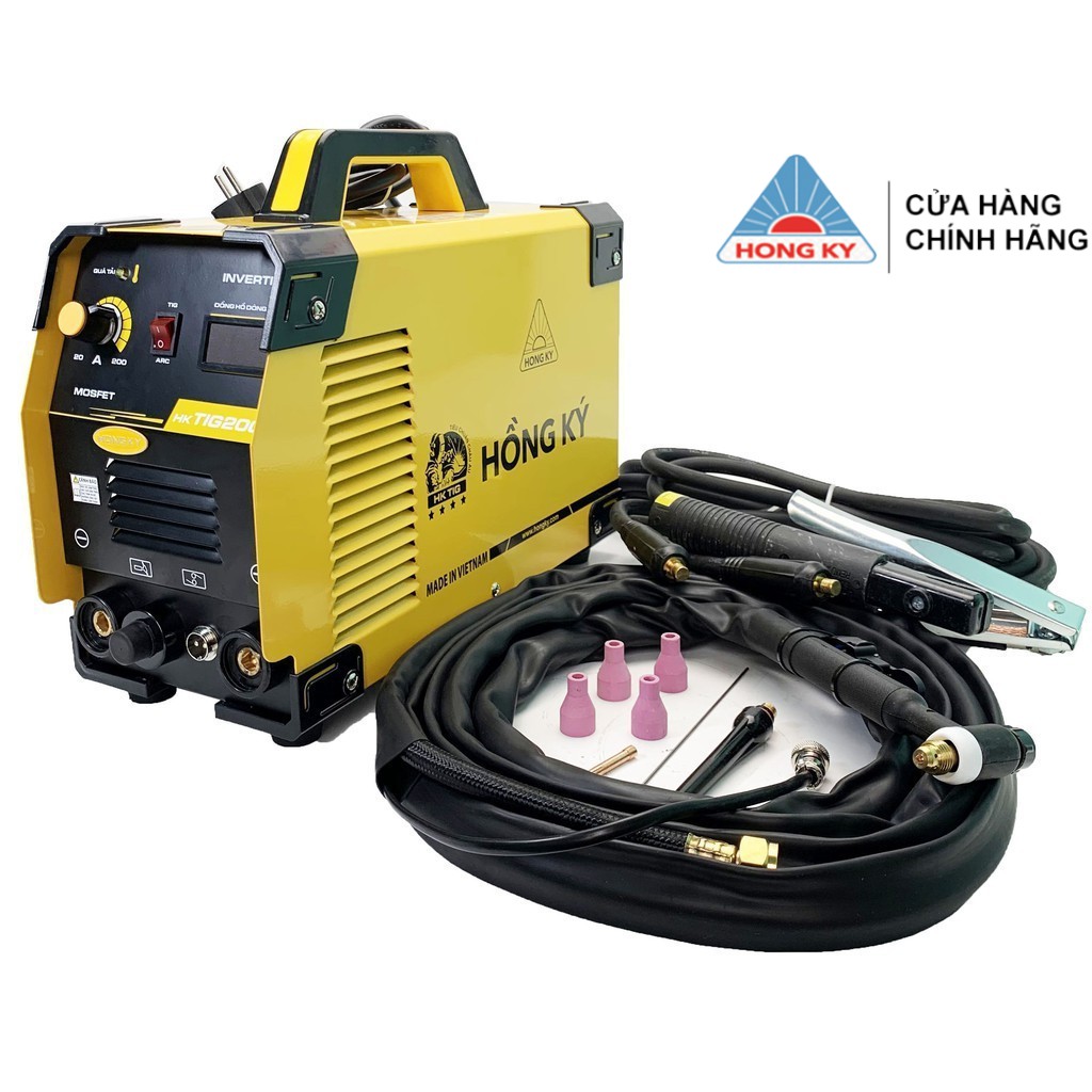 + Hồng Ký HK TIG200 (đủ phụ kiện) + tặng găng tay da bò+ Có hai chức năng: hàn đũa và hàn khí Argon(TIG)