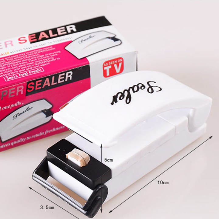 - Máy hoạt động bằng 2 pin 1.5V, tạo sức nóng để hàn kín miệng túi, sử dụng trong các trường hợp cụ thể như: hàn các loại đồ ăn đã bóc dở như bim bim, túi bánh, kẹo, hoặc hàn miệng túi đựng các loại đồ khô, đồ cần được bảo quản trong tủ lạnh.