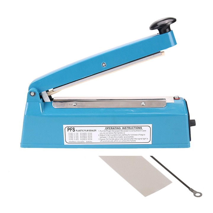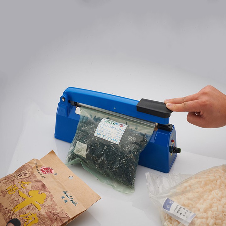 - Máy hàn miệng túi FPS200 20CM (xanh) được dùng phổ biến trong các hộ gia đình, siêu thị, nhà bếp hoặc các cửa hàng, chẳng hạn như cửa hàng cafe, cửa hàng bánh kẹo, gian hàng ăn nhanh, cửa hàng thuốc, nhà máy nhỏ,… Với giả cả phải chăng và dễ dàng sử dụng, máy hàn mép túi dập tay đang là loại máy được sử dụng thông dụng nhất