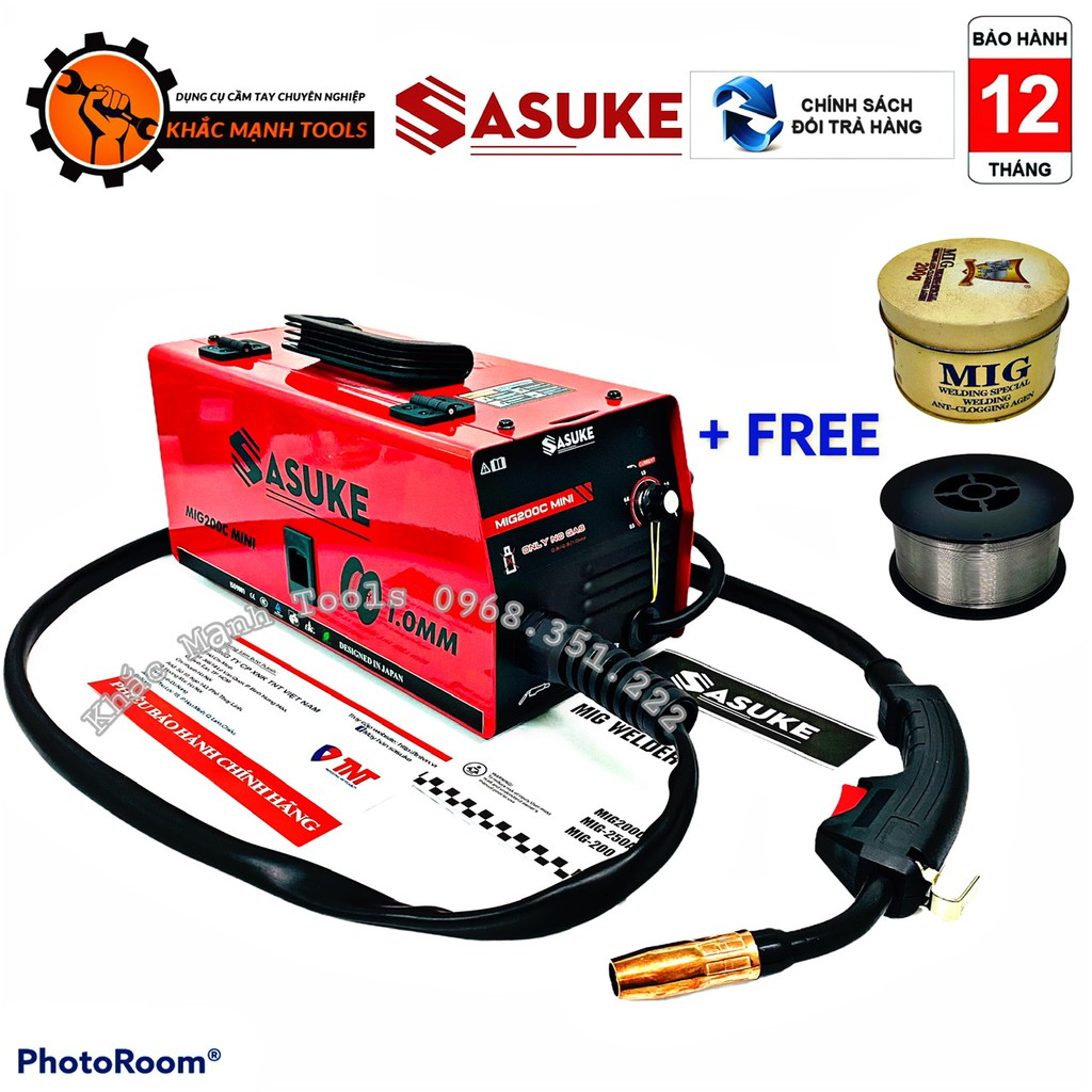 MÁY HÀN MIG MINI SASUKE 200C - Tặng cuộn dây hàn 0.8mm và mỡ hàn