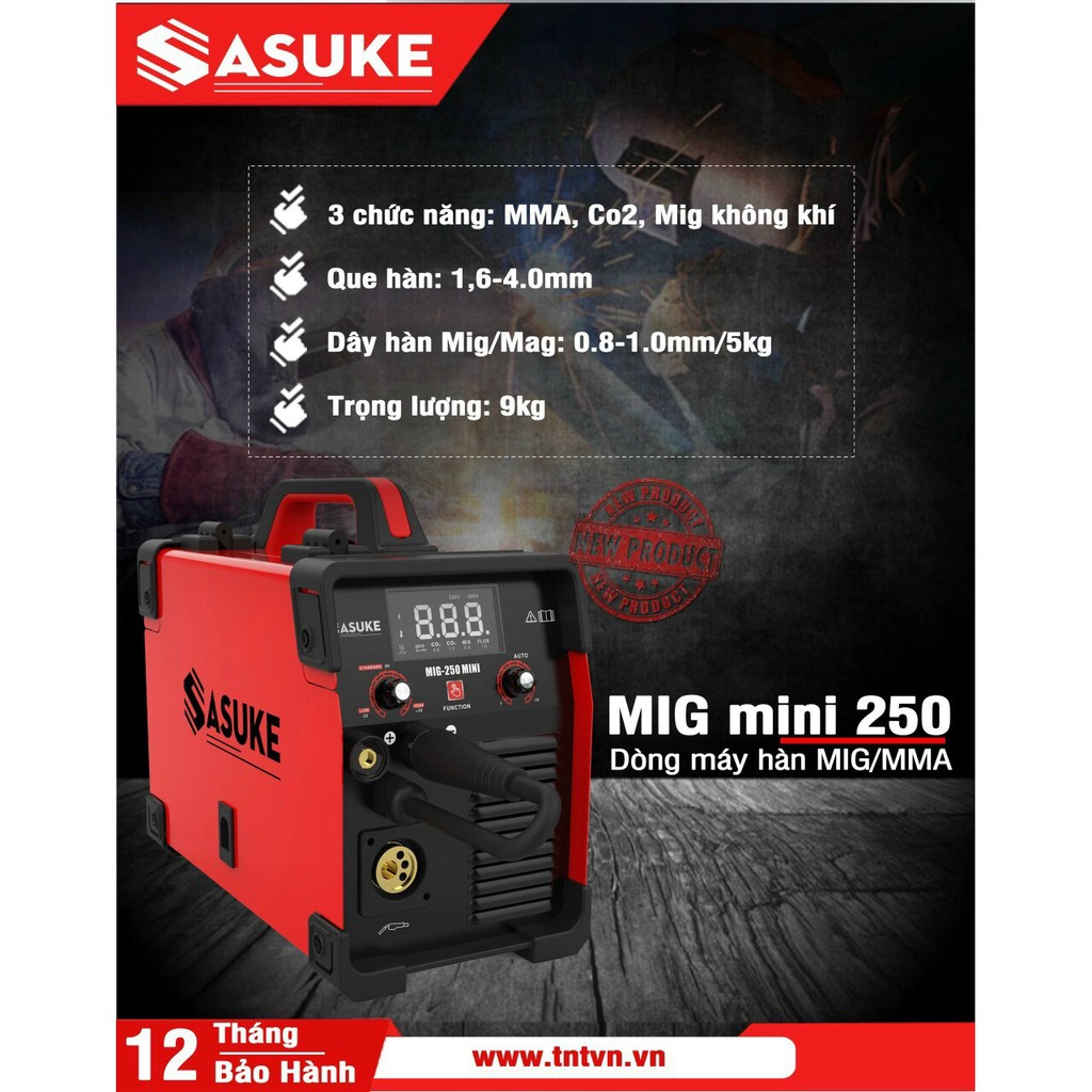 Máy hàn siêu phẩm mới 4 chức năng SASUKE MIG-250MINICông nghệ: Inverter Igbt, digital, đa pcb (viết tắt của Printed Circuit Board)