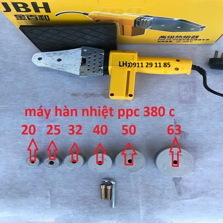 Máy hàn nhiệt cao cấp loại dùng cho đầu hàn có kích cỡ từ 20mm & 25mm & 32mm & 40mm & 50mm & 63mm. Sản phẩm bền bỉ với dây đốt dày dặn, chắc chắn và được sản xuất bởi máy móc, thiết bị và công nghệ hiện đại.