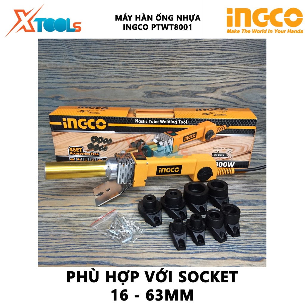 Giới thiệu Máy hàn ống nhựa INGCO PTWT8001 | Máy hàn nhiệt 800 W, bộ ổ cắm nhiệt 16, 20, 25, 32mm, Điều chỉnh nhiệt 0-300°C hàn ống