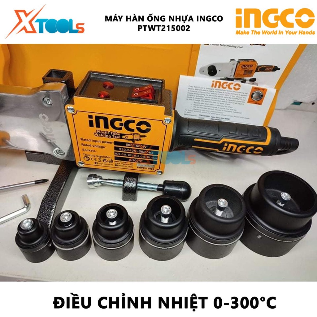 Máy hàn ống nhựa INGCO PTWT215002 | Máy hàn nhiệt 1500W, bộ ổ cắm nhiệt: 20, 25, 32, 40, 50, 63mm, Điều chỉnh nhiệt 0-30