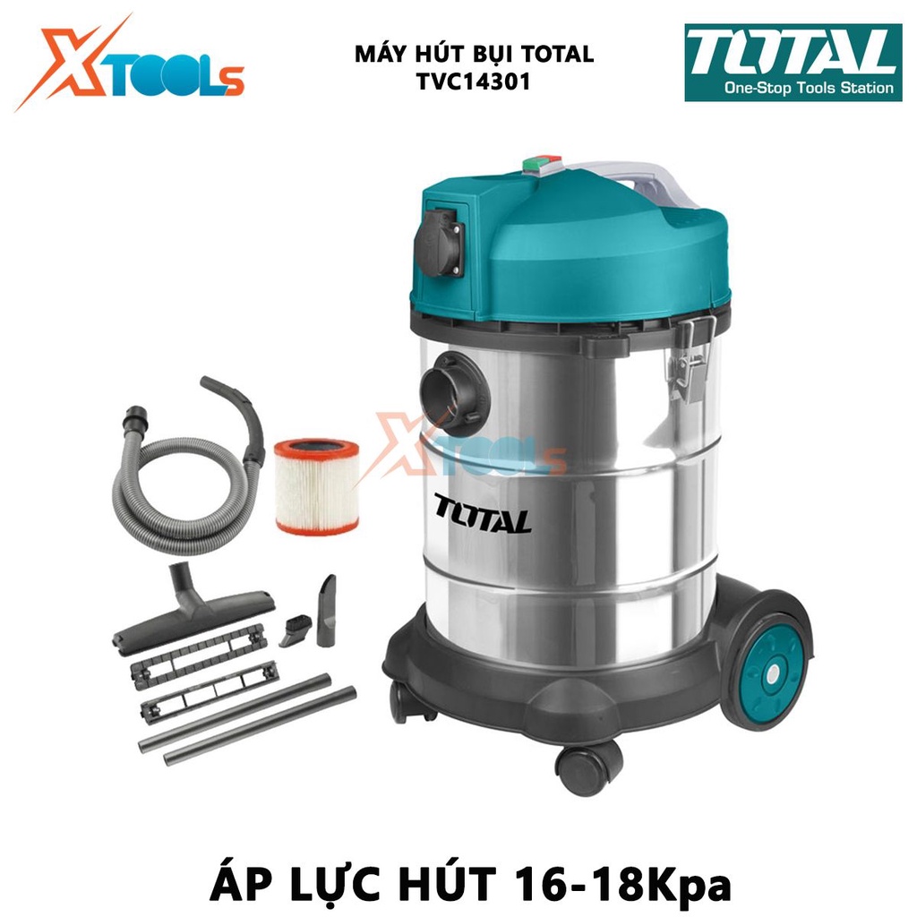 Máy hút bụi 30 lít TOTAL TVC14301 | máy hút bụi cầm tay công suất đầu vào 1400W lượng khí thổi 1.9CBM/Min áp lực hút 16-