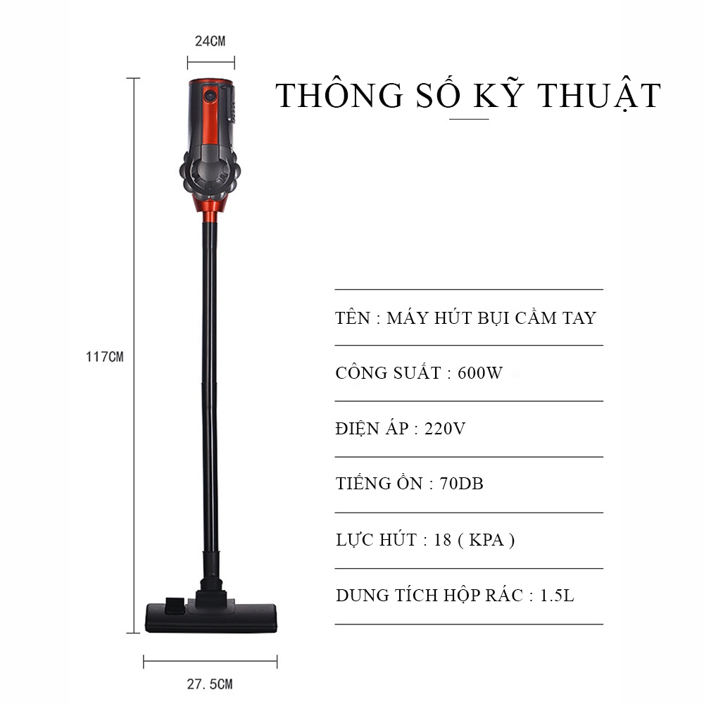 ☑️ Công suất: 600W☑️ Hút: 18 kPa ☑️ Điện áp : 220V ☑️ Tiết kiệm năng lượng☑️ Cân nặng: 2.2 kg► Gói bao gồm: