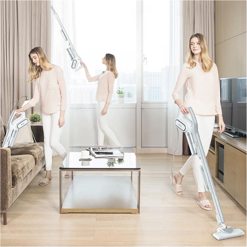 - Máy hút bụi cầm tay cao cấp Deerma sở hữu kiểu dáng đẹp mắt cùng màu sắc trang nhã, không chỉ hỗ trợ tối đa cho công việc vệ sinh nhà cửa mà còn góp phần mang đến phong cách hiện đại cho không gian sống.