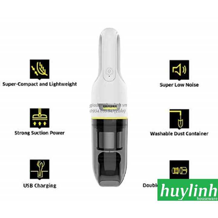- Nhỏ gọn và rất mạnh mẽ, Máy hút bụi cầm tay Karcher VCH 2 chạy bằng pin rất phù hợp cho việc hút bụi hàng ngày, nhanh chóng xử lý các mảnh vụn, bụi hoặc tóc trên đồ nội thất và sàn nhà hoặc trong xe hơi,...