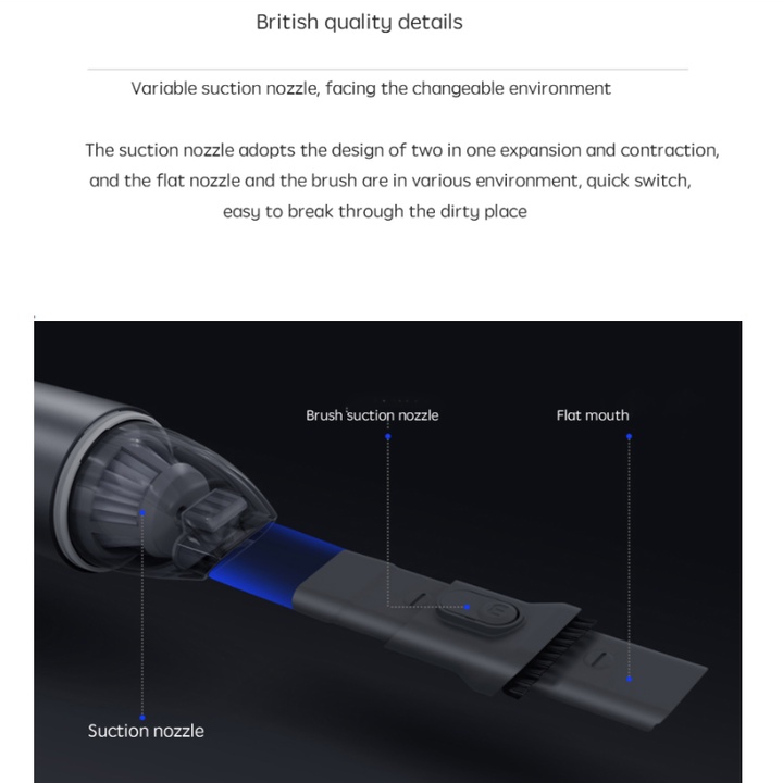 - Điểm khác biệt trong thiết kế đó là máy hút bụi xe hơi MR3936 được trang bị nắp che bụi khá tiện lợi, bên cạnh đó còn giúp cố định máy tốt hơn trong quá trình lưu trữ và sạc. Máy hút bụi Morphy Richards có thiết kế đầu hút và đầu bàn chải tích hợp 2 trong 1, dễ dàng thay đổi chế độ linh hoạt chỉ với 1 nút bấm, đáp ứng nhu cầu làm sạch các vị trí khác nhau 1 cách nhanh chóng. Cụ thể đầu hút có nhiệm vụ làm sạch các không gian hẹp trong xe hoặc trong bàn, trong khi đó bàn chải dùng để làm sạch các bụi bẩn cứng đầu bên trong xe.