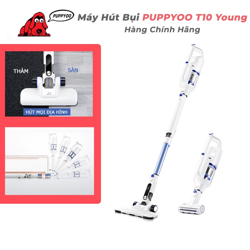 Máy hút bụi cầm tay không dây cao cấp Puppyoo T10 Young thiết kế Elbow Lực hút 17000Pa hàng chính hãng bảo hành 12 tháng