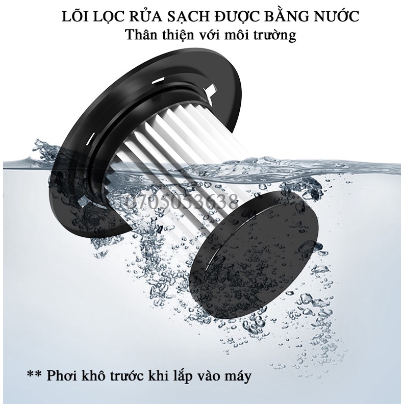 - Lõi lọc: đạt chuẩn HEPA, có thể tái sử dụng nhiều lần