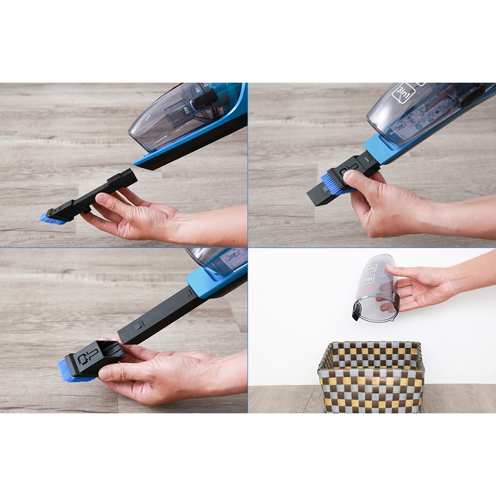Tiện ích:Vừa hút bụi và lau sàn, Thân máy nhỏ gọn, Công nghệ hút xoáy Cyclone giảm 50 % kích thước bụi