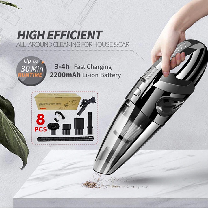 Máy Hút Bụi ô tô cầm tay không dây công suất cao 220W dùng pin ! Dọn sạch Ô Tô và Gia Đình của bạn trong vài phút !