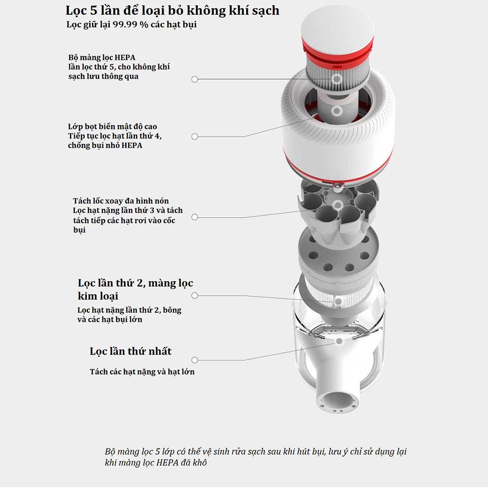 Với tính năng lọc HEPA 5 lớp hiện đại. Máy có thể lọc sạch đến 99,97% bụi và các chất gây dị ứng. Trả lại không gian sống sạch sẽ thoáng mát cho gia đình và hạn chế được các bệnh lây qua đường hô hấp.