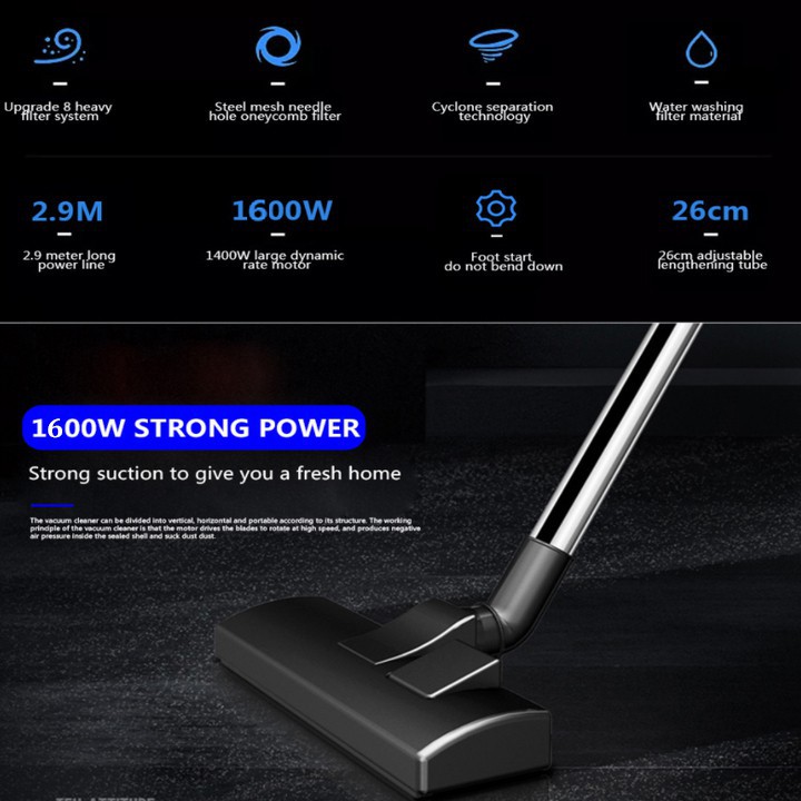 - Máy hút bụi DSP có công suất vận hành 1600W đầy mạnh mẽ, tăng khả năng hút bụi hiệu quả hơn, hút sạch tối đa bụi bẩn trong ngôi nhà bạn trong thời gian ngắn.