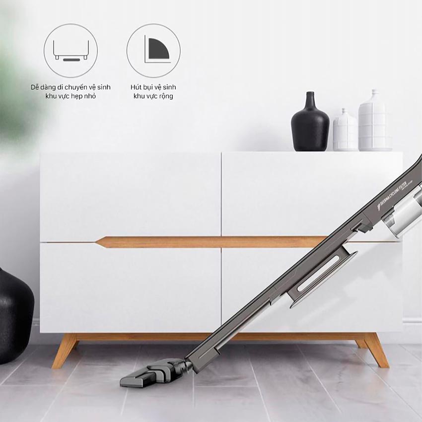 Thiết kế 2 trong 1 tiện lợi, tháo rời sử dụng như máy hút bụi cầm tay Hút sạch mọi ngóc ngách với 3 đầu hút: Hút sàn, bàn chải, hút khe Công nghệ Pro-Cyclone, Rocket Vacuum nén bụi tốt, chống tắc nghẽn Công suất hút tăng cường 15000 Pa làm sạch tối ưu, tiết kiệm thời gian Bộ lọc HEPA lọc sạch bụi bẩn với hộp chứa bụi 0.8 lít dễ dàng tháo rời