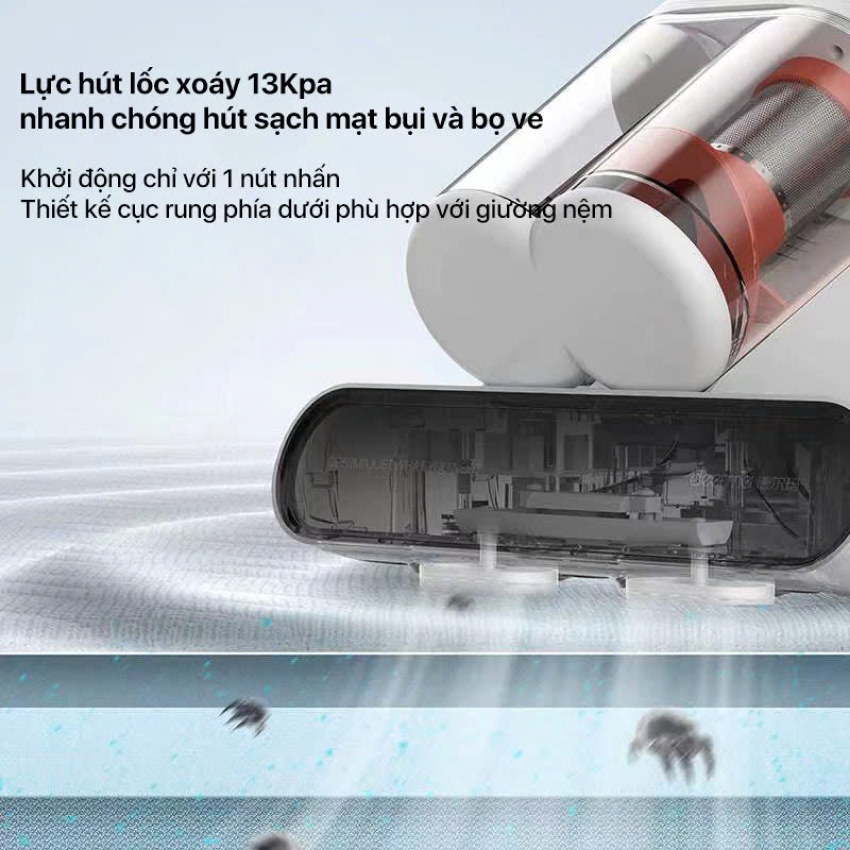 Thiết kế hộc chứa bụi kép giúp dễ dàng tách bụi và bảo vệ bộ lọc hiệu quả Trang bị đèn UV hỗ trợ diệt khuẩn và bọ ve lên đến 99,9% Bộ phận rung tạo lực vỗ mạnh trên bề mặt với tần suất 12.600 lần/phút Tích hợp cảm biến bảo vệ người dùng khỏi tiếp xúc trực tiếp với tia UV Lực hút lốc xoáy đến 13.000 Pa mạnh mẽ giúp hút sạch bụi bẩn triệt để Sấy khô khí nóng 60°C giúp khử khuẩn, diệt bọ ve, sấy khô nhanh chóng Hộc bụi 0.6 lít giúp vệ sinh mà không cần đổ bụi nhiều lần Thiết kế gọn nhẹ, thao tác đơn giản chỉ với một nút nhấn Thiết kế cực rung phía dưới phù hợp với giường nệm