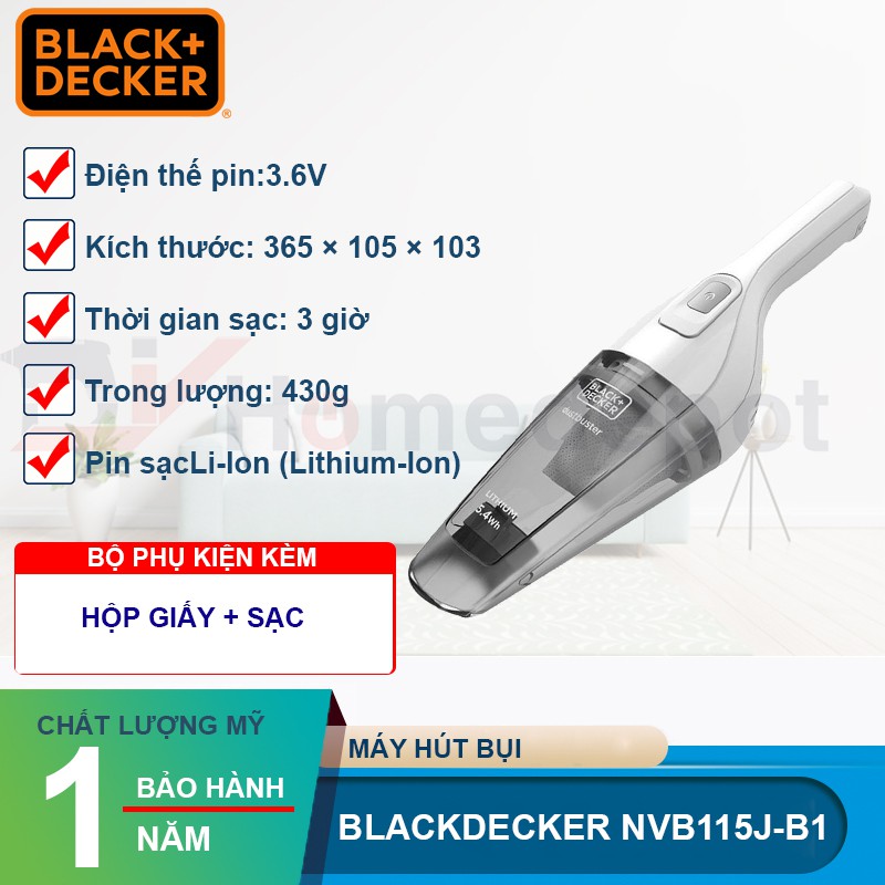 Thiết Bị Điện Gia Dụng > Thiết bị điện gia dụng nhỏ > Máy hút bụi & Thiết bị làm sạch sàn || Máy hút bụi dùng pin Black&Decker NVB115J-B1Còn hàng