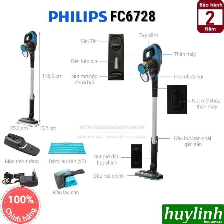 Giới thiệu [Mã ELHAMS5 giảm 6% đơn 300K] Máy hút bụi dùng pin có cán Philips FC6728 - 3 trong 1 - chính hãng