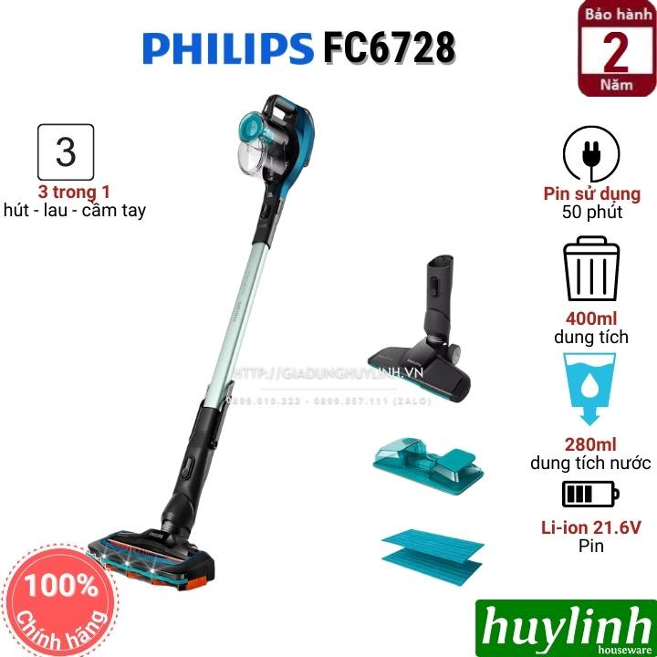 Máy hút bụi Philips FC6728 với thiết kế 3 trong 1: hút bụi, lau sàn và cầm tay, sử dụng pin 21.6V tiện dụng.Huy Linh phân phối và bảo hành chính hãng tại Philips Việt Nam.