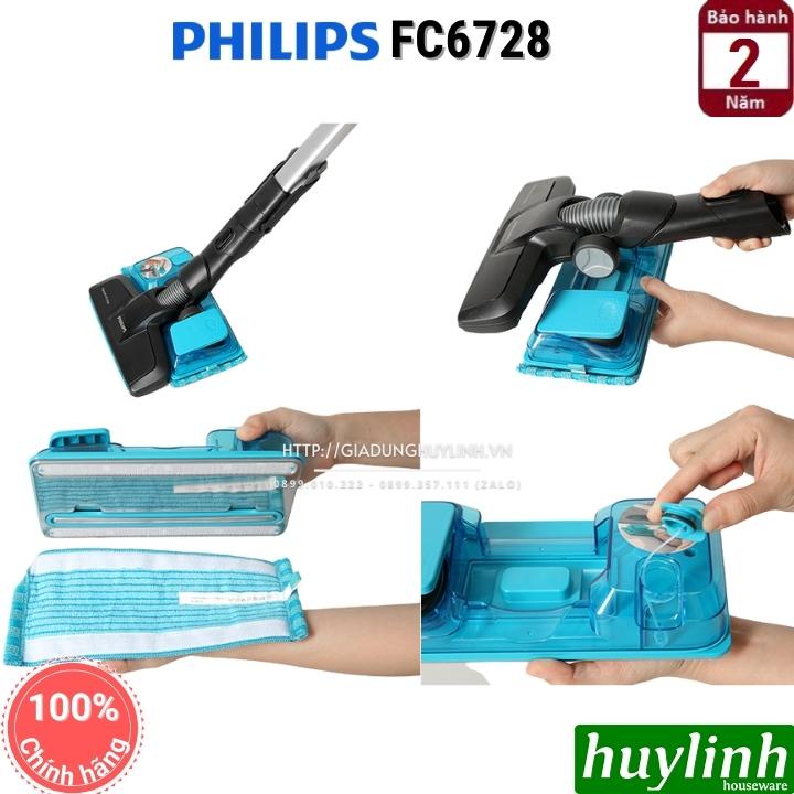 - Máy hút bụi dùng pin Philips FC6728 có hệ thống hút bụi và lau sàn độc đáo kiểm soát việc tháo nước để duy trì độ ướt tối ưu cho tất cả các sàn cứng trong khi lau dọn. Có thể giặt các tấm đệm vi sợi bằng tay hoặc bằng máy giặt.